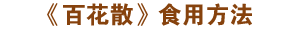 服法:每日四次(包括晚上睡覺前一次), 每次蜂蜜及《百花散》藥粉各一包調和,飯前一小時用適量溫開水沖服。