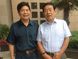 中國抗癌協會常務理事、河南省抗癌協會會長楊文獻教授和《百花散》傳人梅先生合影